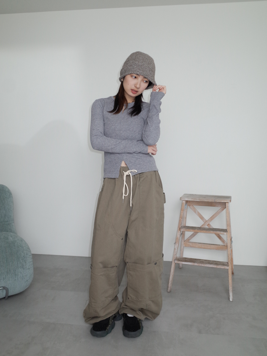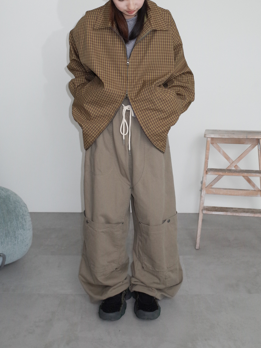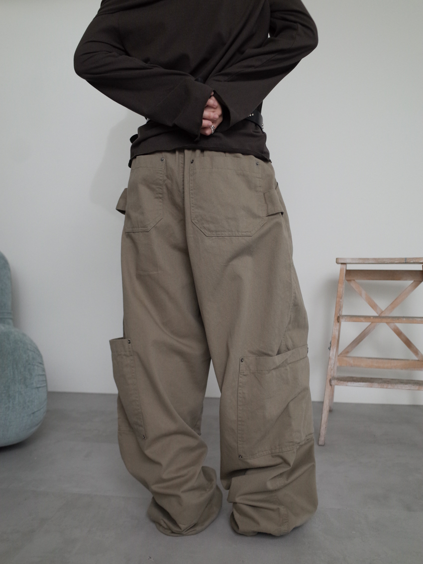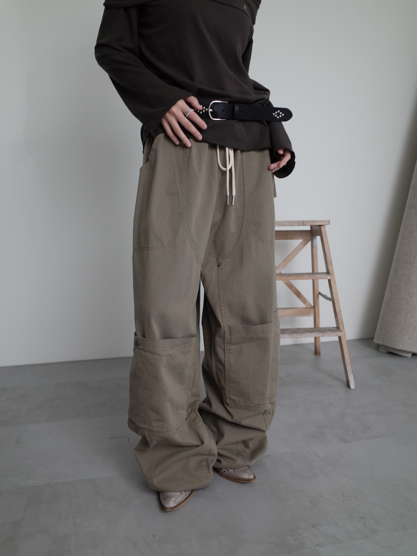 (UNISEX) utility cinch cargo trousers in DRAB GREEN
