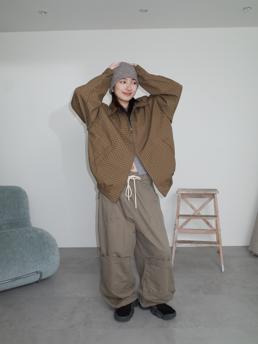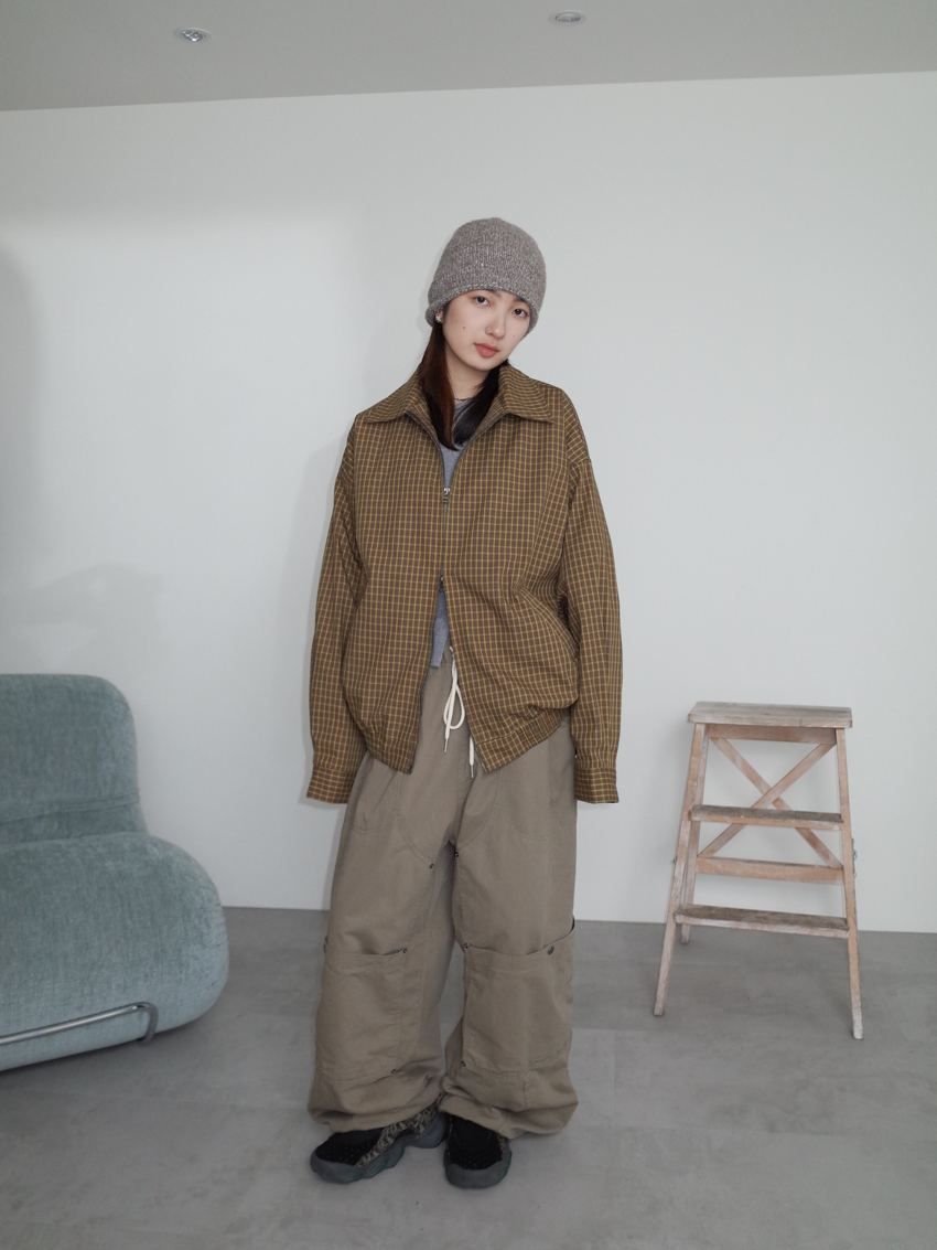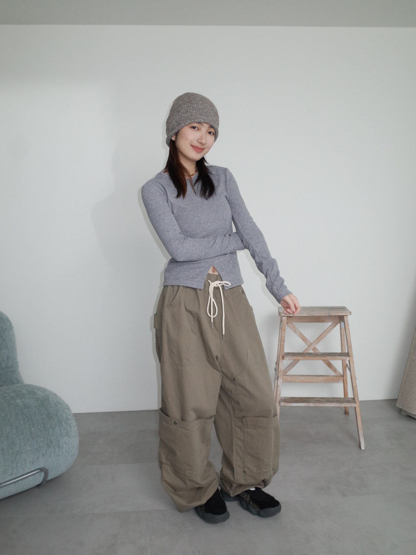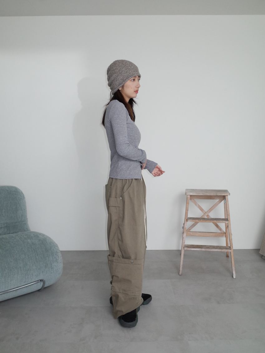 (UNISEX) utility cinch cargo trousers in DRAB GREEN