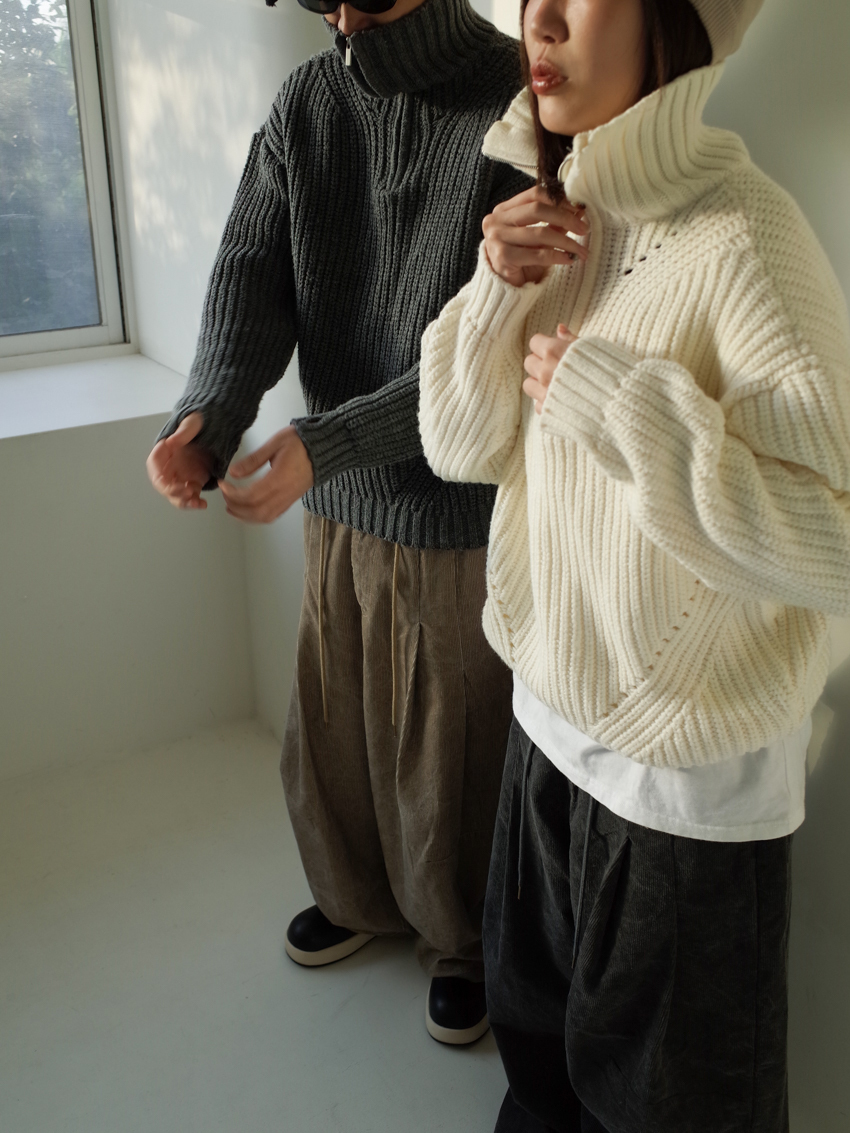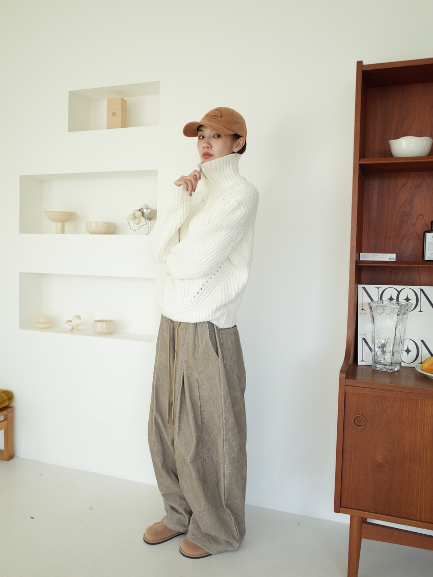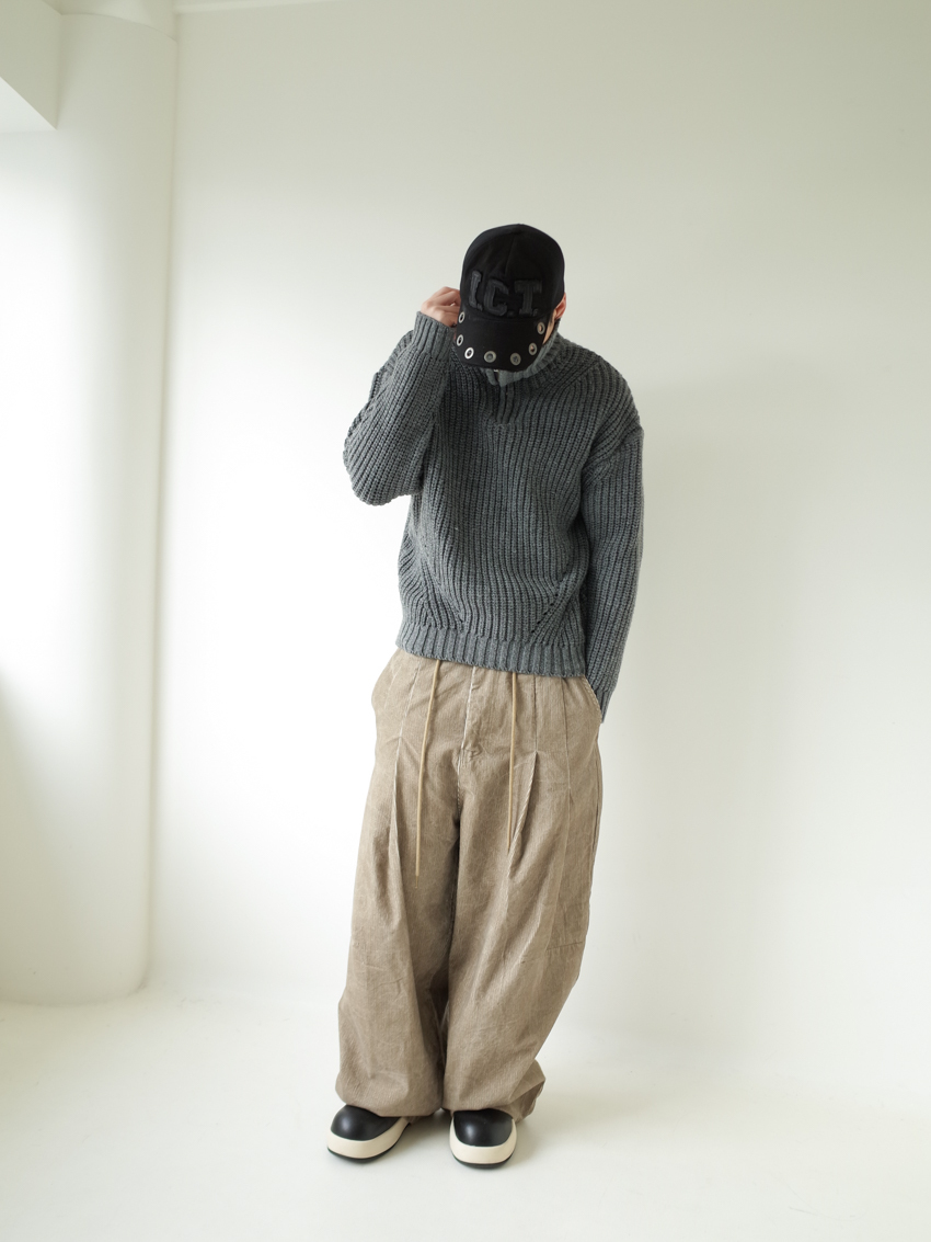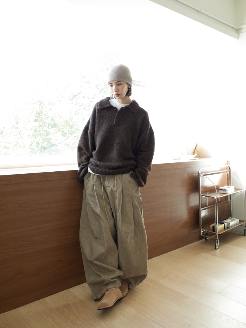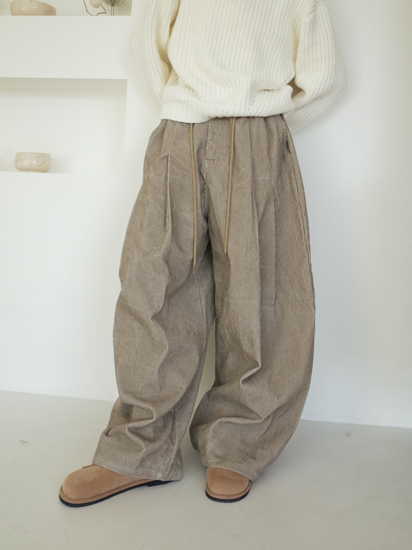 (UNISEX) washed corduroy balloon pants in SAND