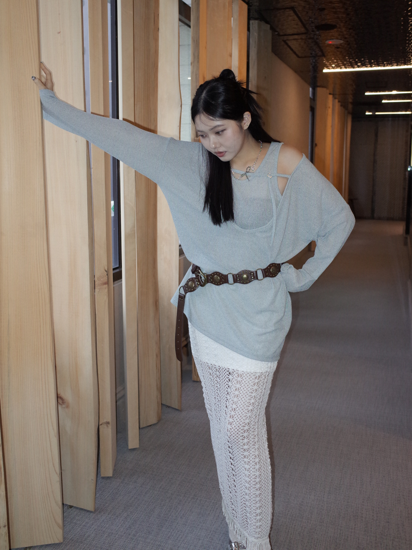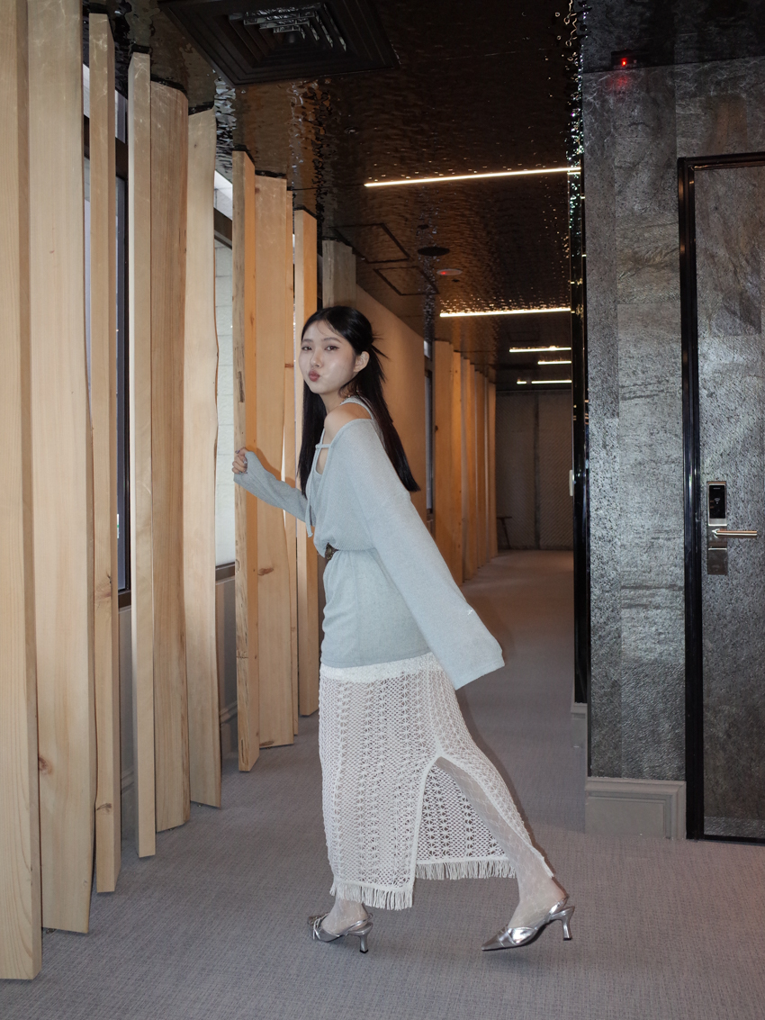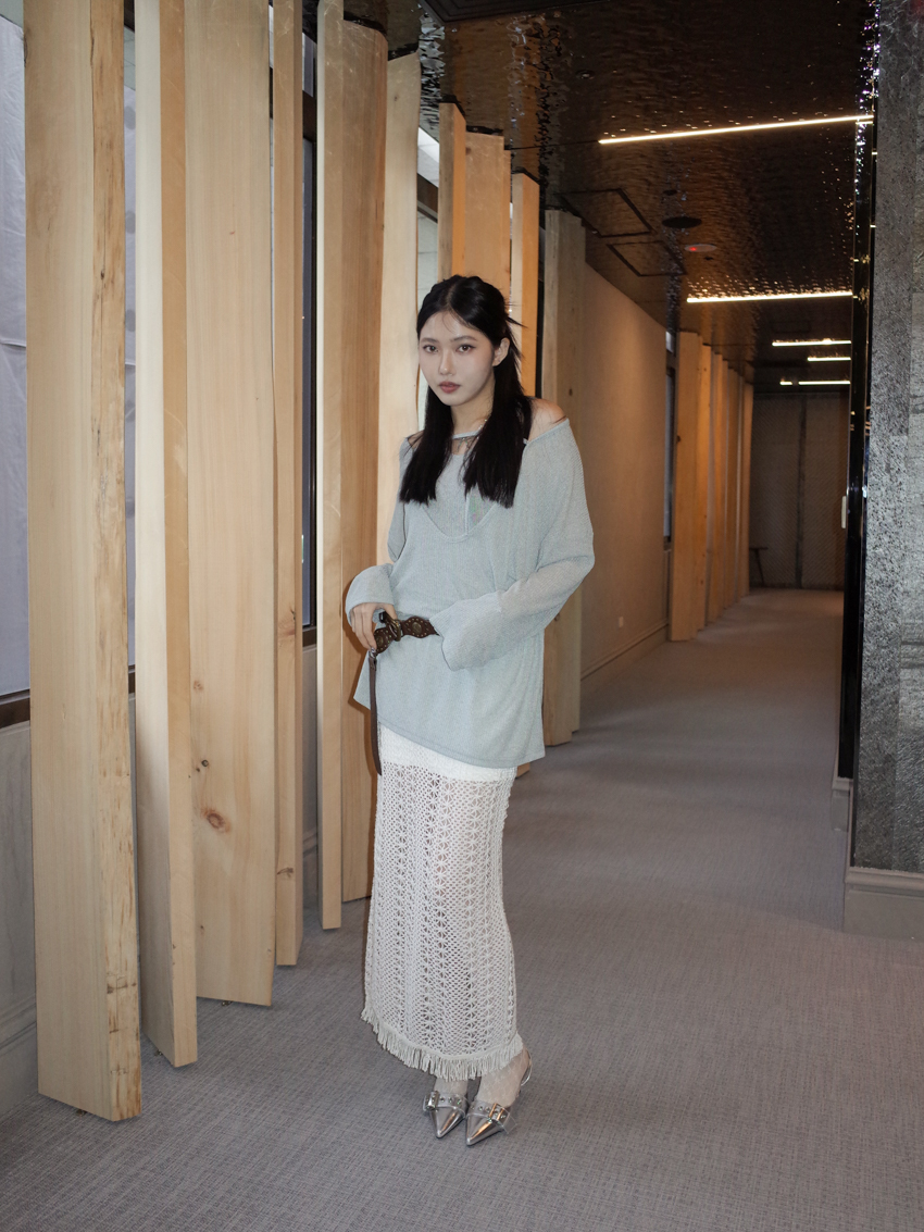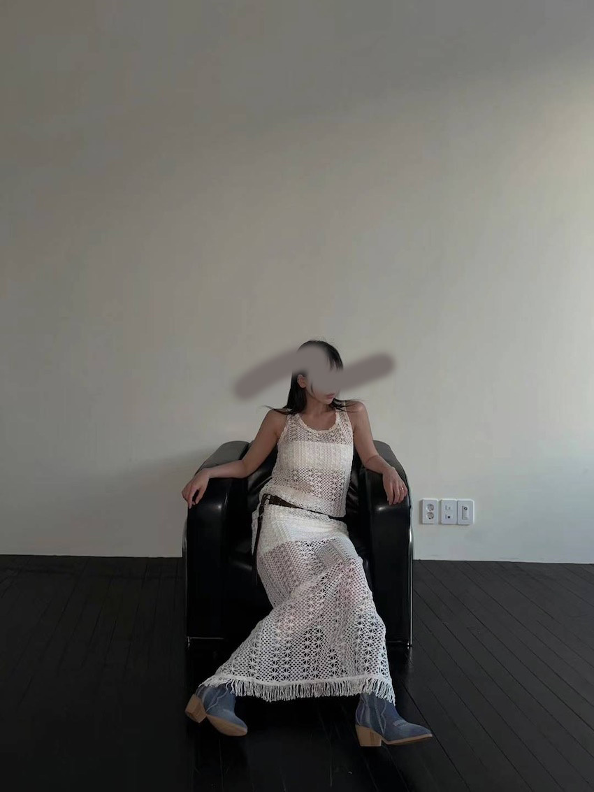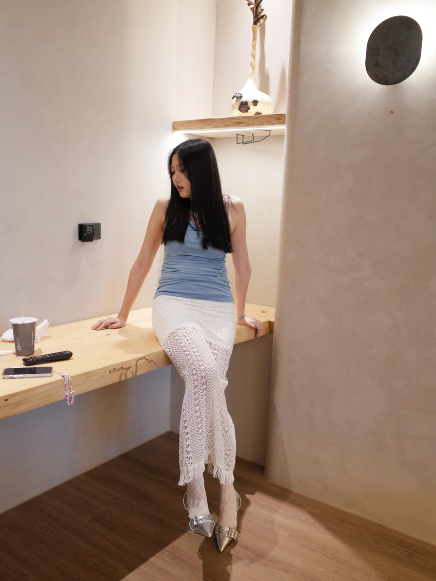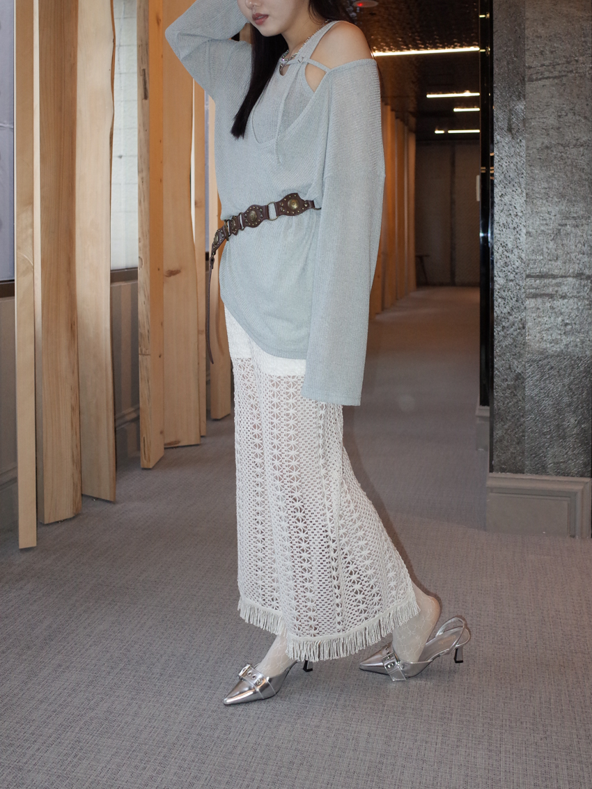 VACATION MODE crocheted strappy vest and fringed long skirt co-ord in IVORY