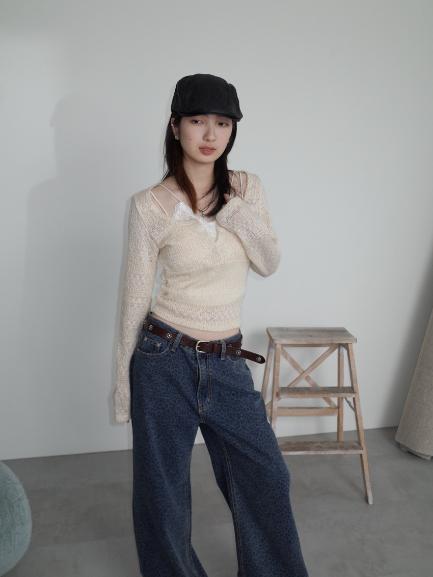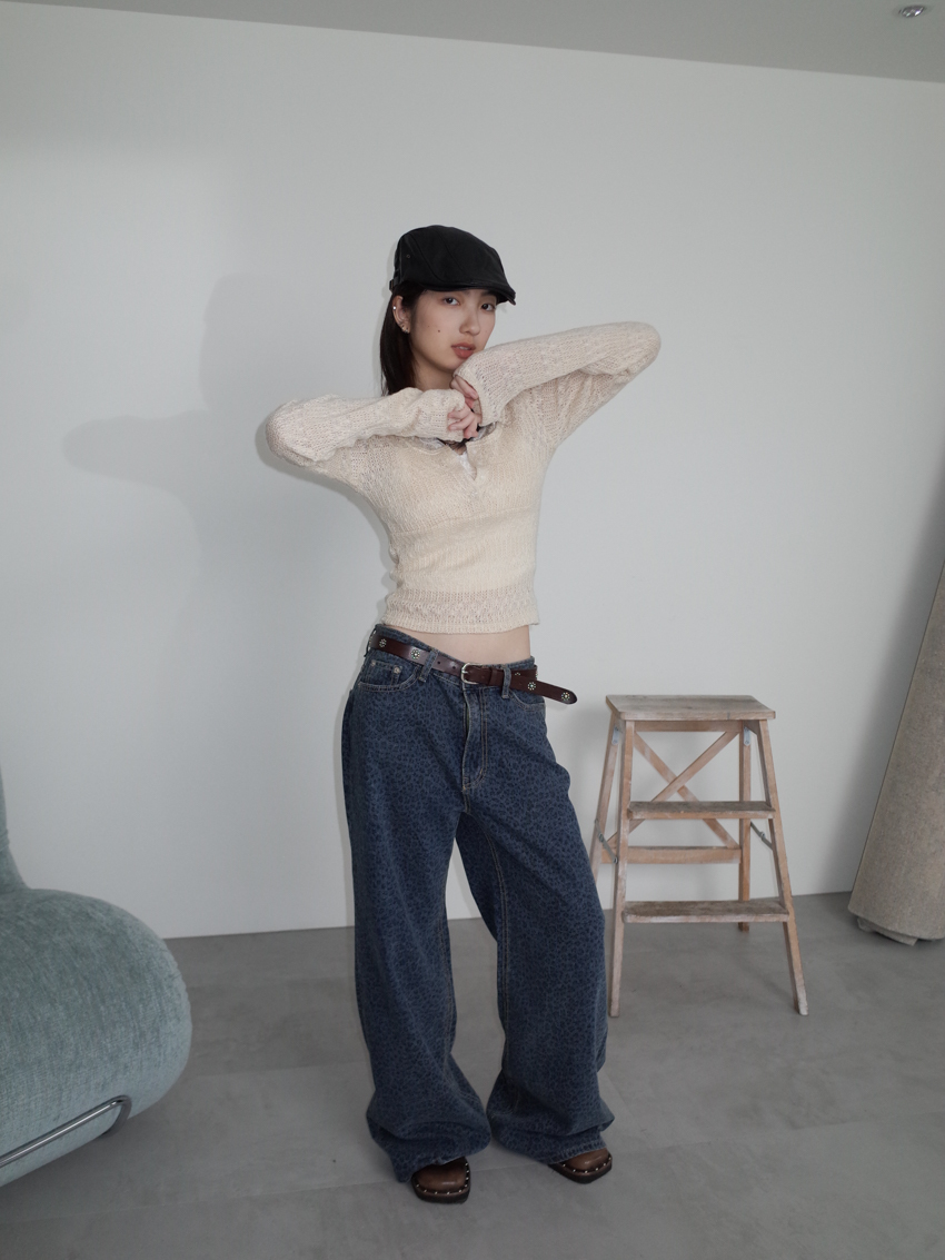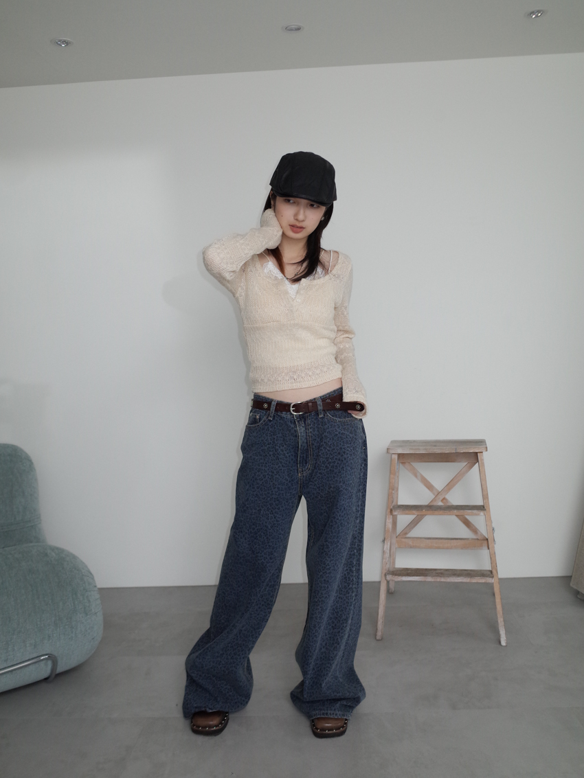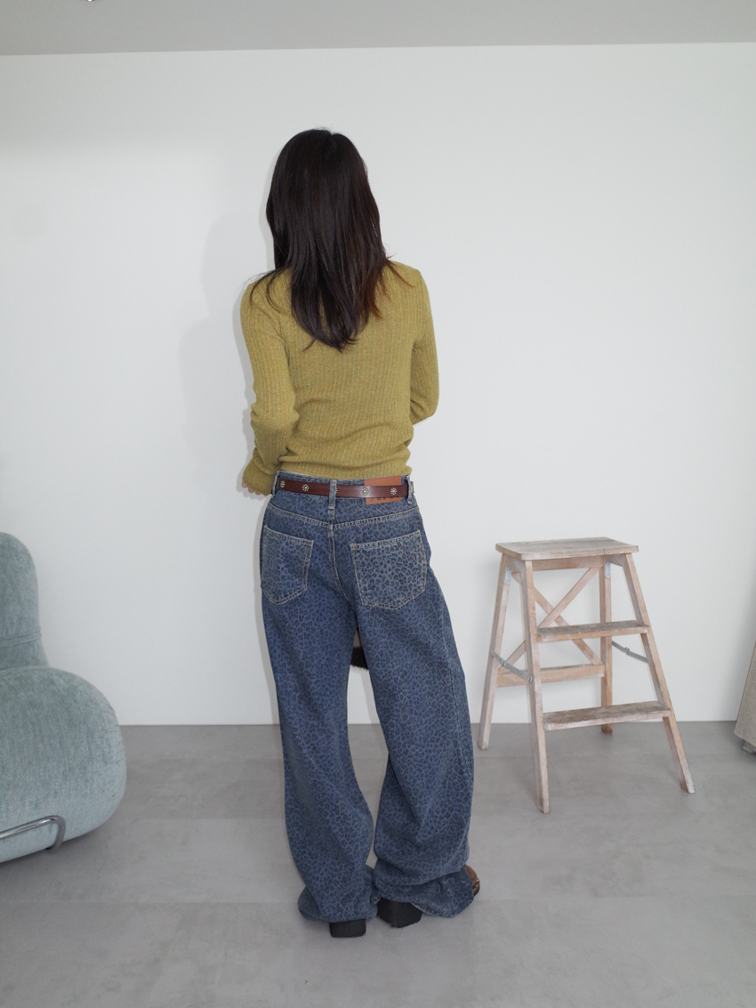 washed leopard flare jeans