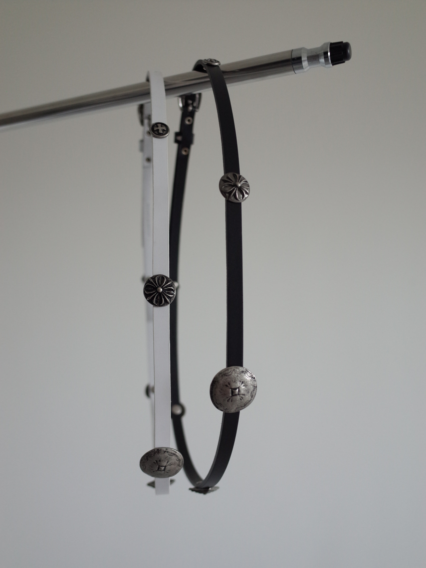 western-style vintage leather belt with metal hardware