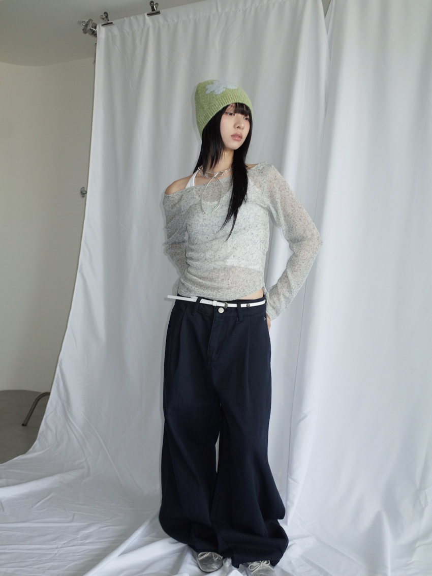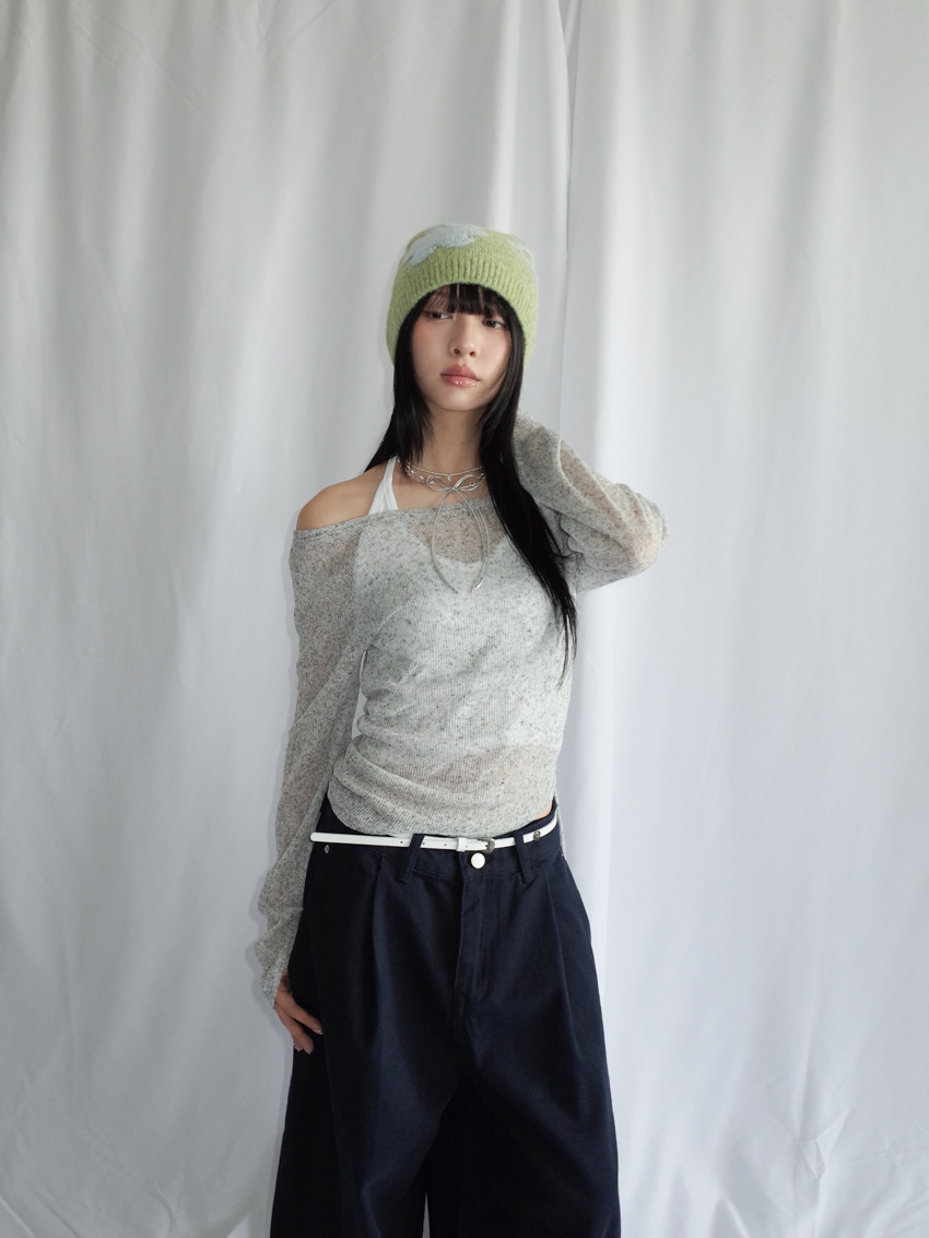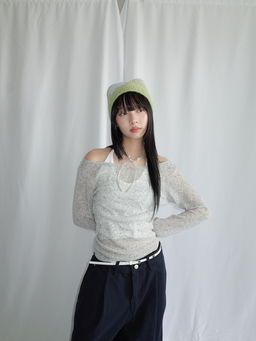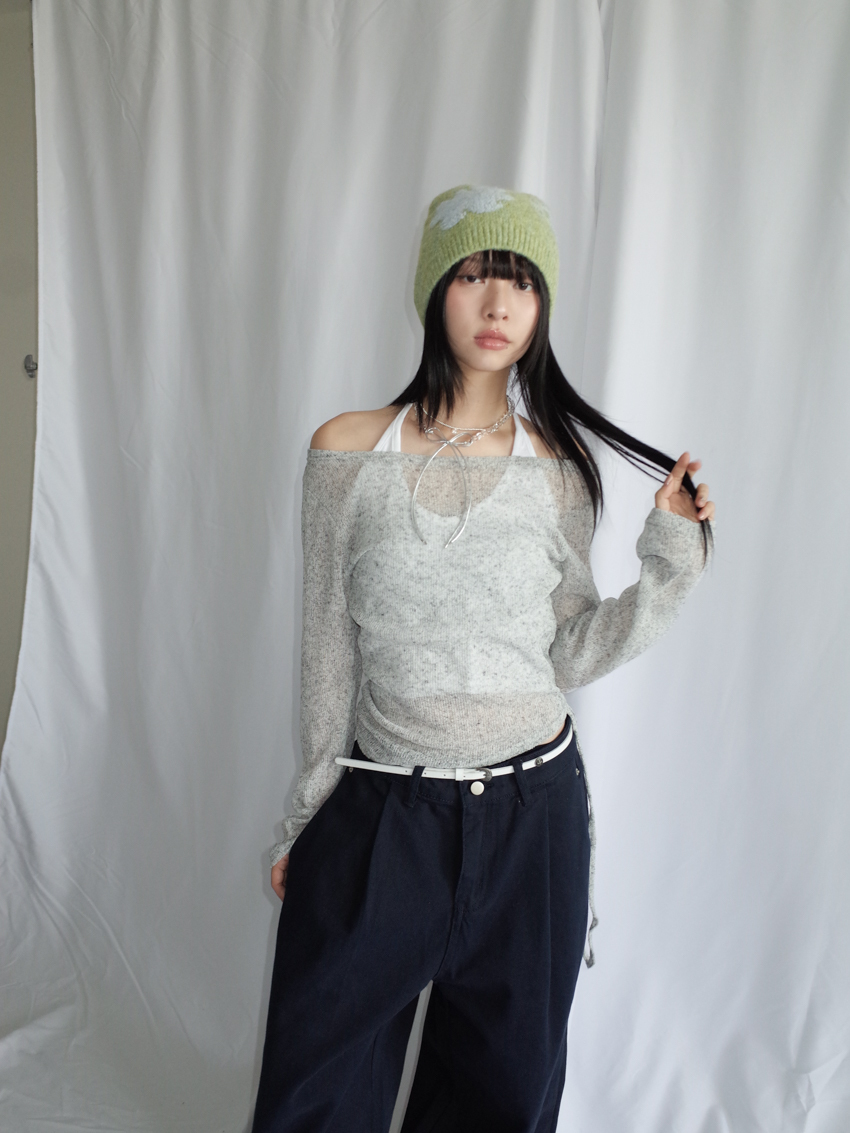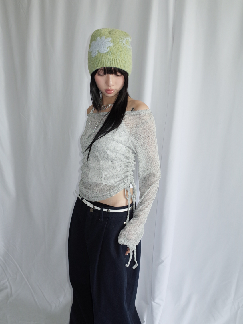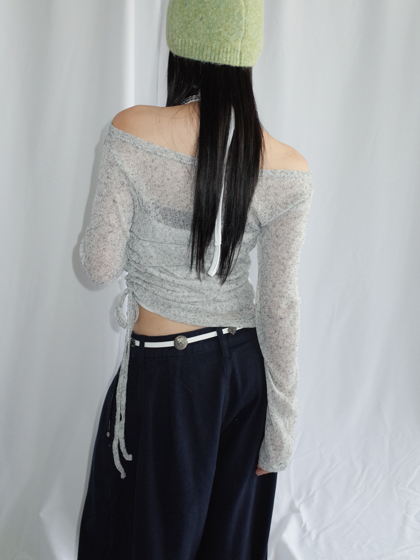 wide-neck speckled top with side ruching