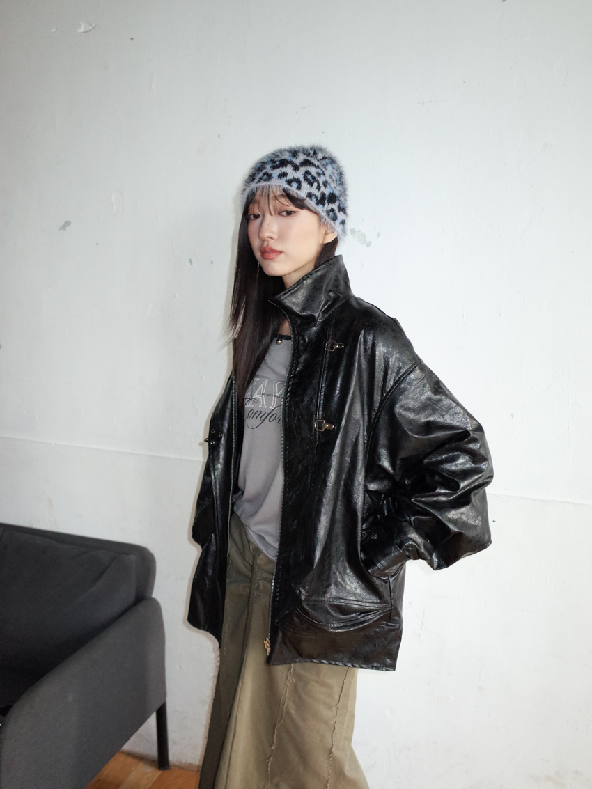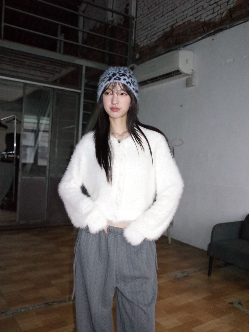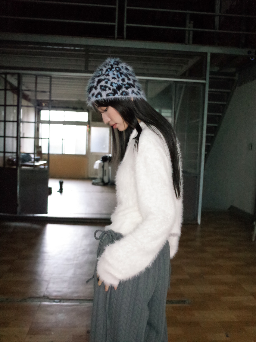 winter leopard print fur beanie