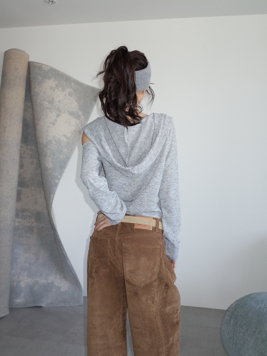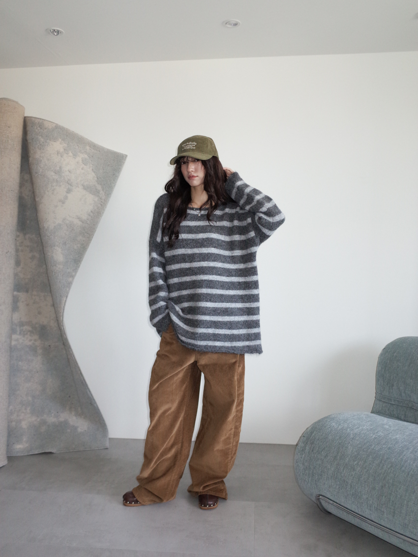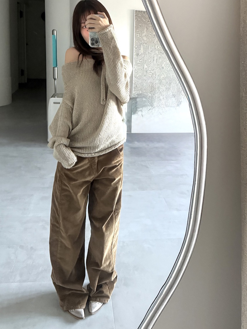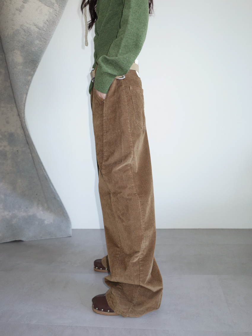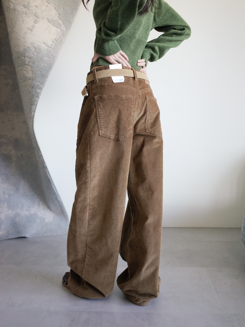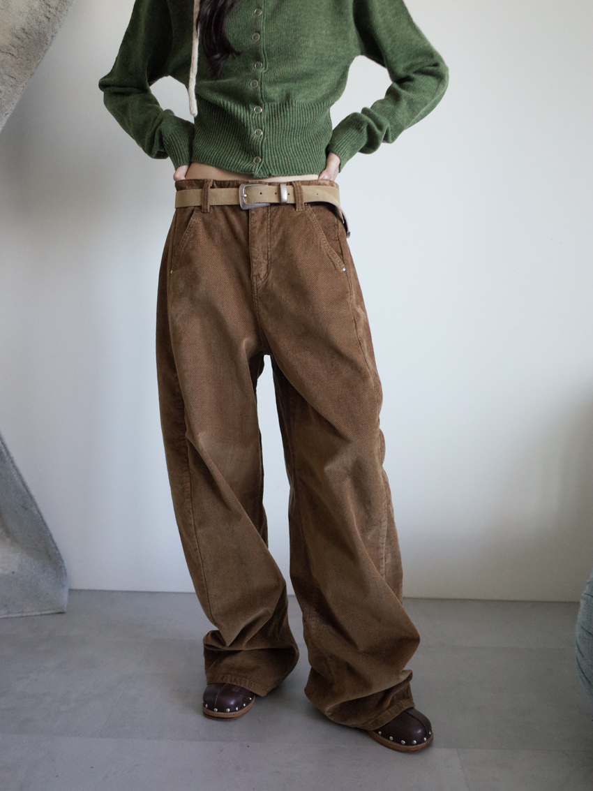 wood-tone brushed corduroy straight wide trousers-CARAMEL